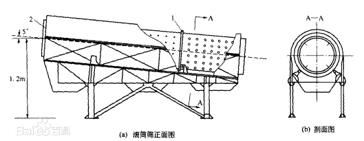 為了提高篩分效率,垃圾在滾筒篩內移動的速度不能太快,否則將造成篩分不充分、不徹底,因此滾筒篩一般都有比較嚴格規定的安裝傾角,通常來說這個角度為5°,當然在實際情況下,可根據需要進行調整。