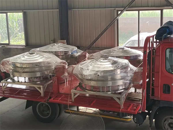 4臺(tái)1200不銹鋼直排篩發(fā)貨, 加裝超聲波系統(tǒng),篩分精度高,產(chǎn)量大, 能耗低,全封閉,無(wú)粉塵,特制電機(jī)。