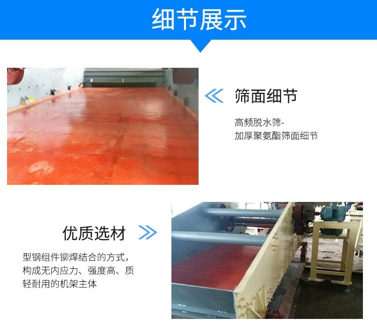沙干排、水循環(huán)',高頻尾礦干排篩通過設(shè)計(jì)的V型篩板結(jié)構(gòu),-5°過濾篩面上尾礦爬坡脫水,干排尾