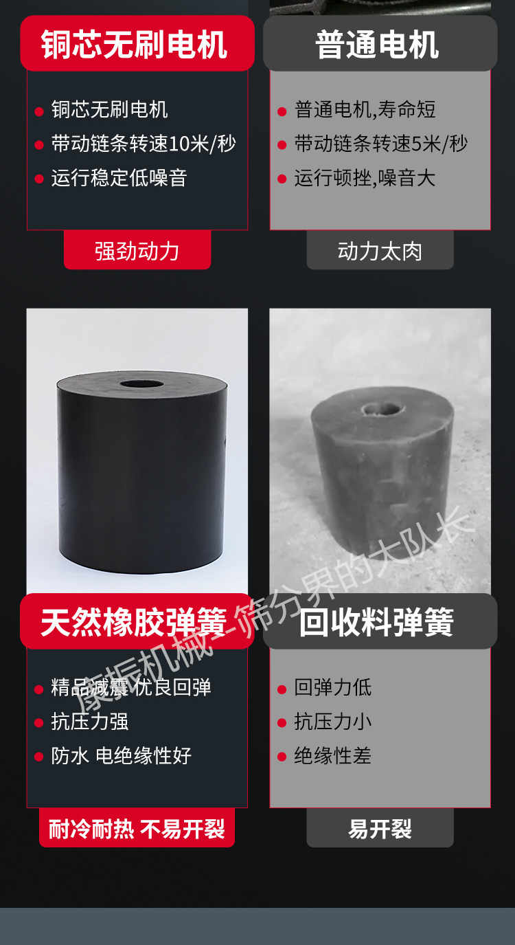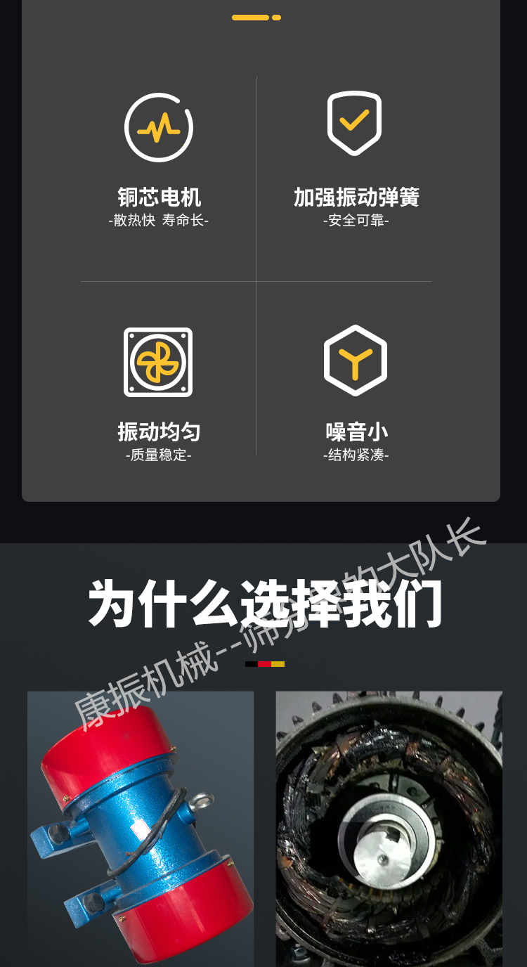 2、振蕩電機為激振源,噪聲低、耗電小、保護簡略。
