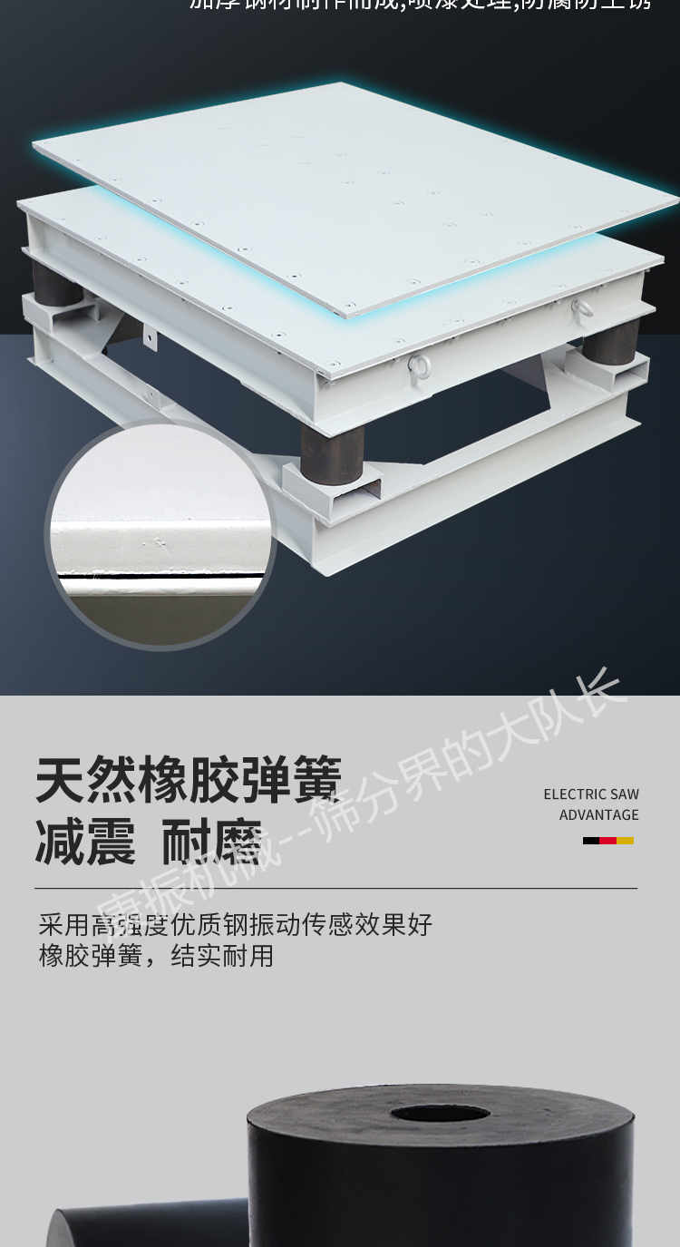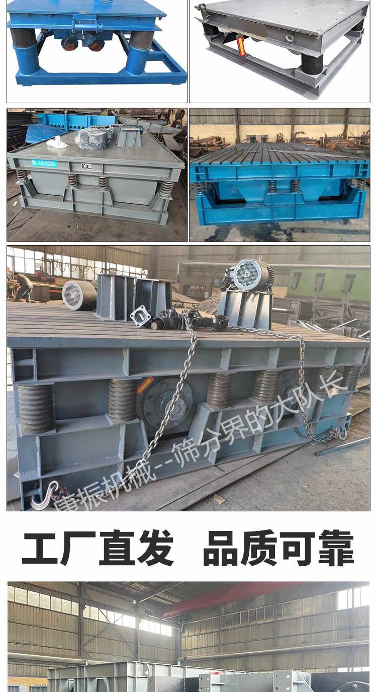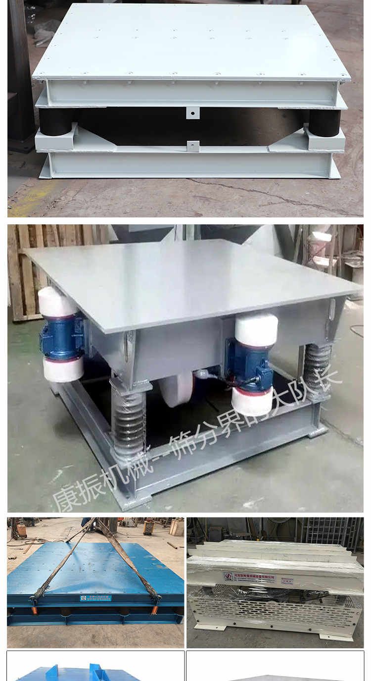 主要由臺底架、振動電機和彈簧等部件組成,臺面與底架均用鋼板和型鋼焊接而成,振動臺是用振動電機加一對相同的偏心輪組成。