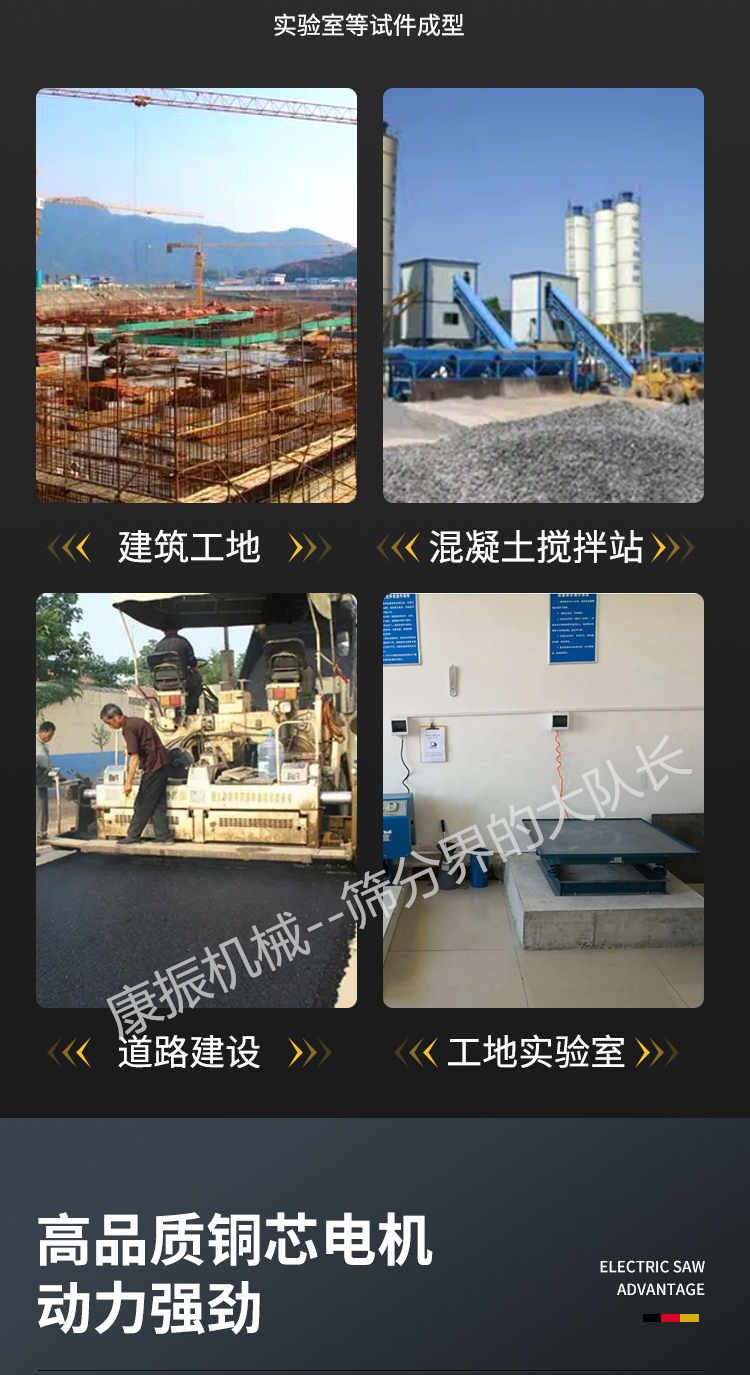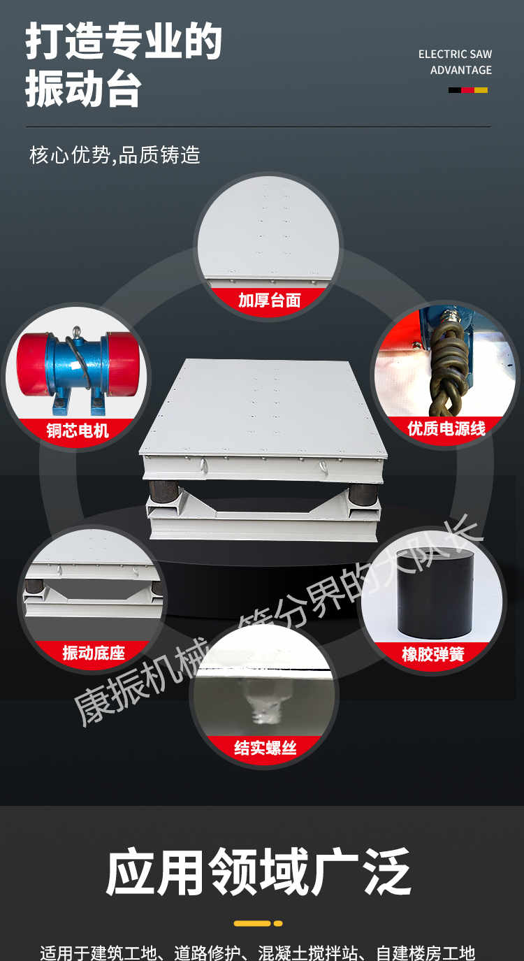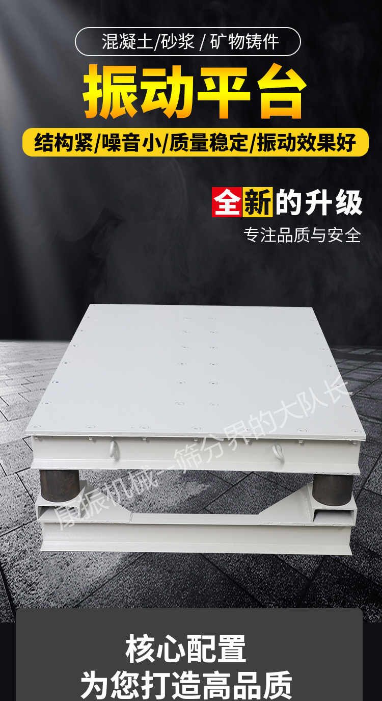 被廣泛應用于試驗室、現場工地作試件成型和預制構件震實各種板柱、梁等混凝土構件振實成型,并應用在冶金、模具、食物、化工、建材等行業。