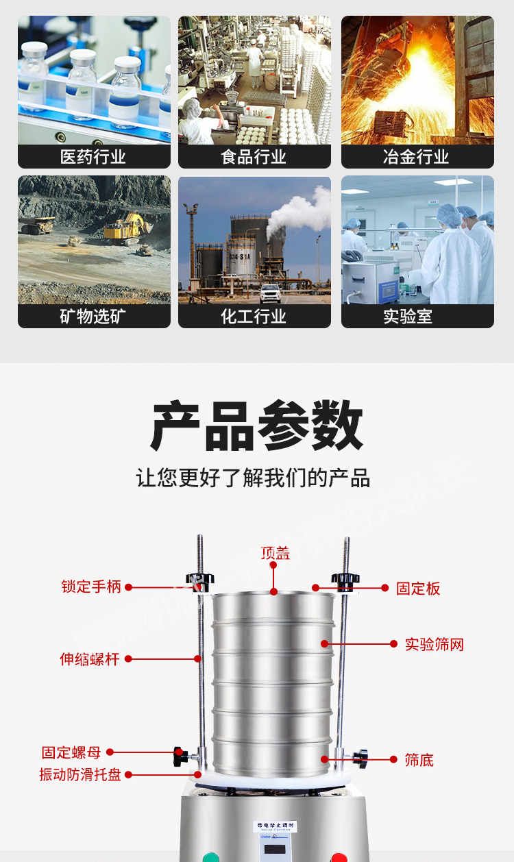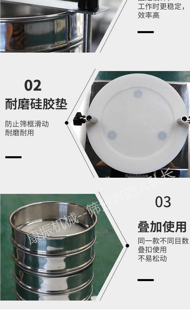 標準檢驗篩(試驗篩)又叫標準篩,是具有標準篩孔的篩析工具,又是檢驗其他粒度檢測方法的工具或依據(jù),實驗室篩分所用的篩子是按表中有關標準制成的篩孔大小不一的試驗套篩,即標準篩。標準篩是由直徑15450mm,高為2550mm的篩框和篩網組成。篩框不銹鋼板制成,實驗室篩分用套篩是一個篩子套在另一個篩子上疊成的。上層的篩孔大,下層的篩孔小。上部加一個蓋,下部加一個底盤,以減少灰塵和損失。底盤還用來承接通過后一個篩子的細粒級產品。