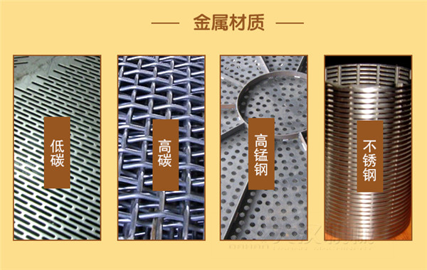 目前篩網材質主要分為金屬的與非金屬的兩種,其中金屬材質包括高碳、低碳、不銹鋼、高錳鋼等,非金屬材質主要有尼龍、聚氨酯、橡膠等。大家在選擇時需要根據自己的篩分物料選擇合適的篩網。