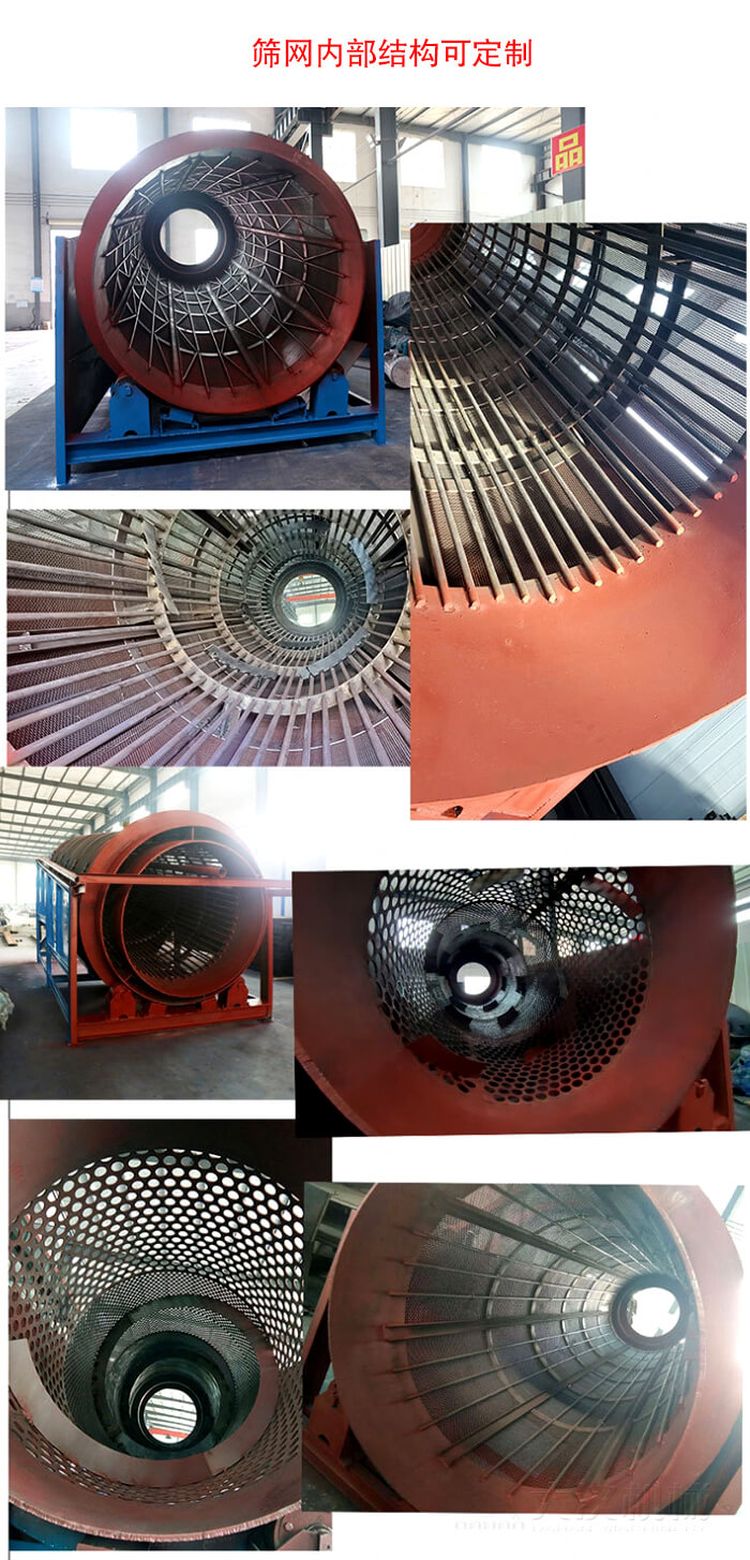 我公司研制的重型滾筒篩進(jìn)料口可根據(jù)現(xiàn)場(chǎng)實(shí)際設(shè)計(jì),無(wú)論是皮帶、漏斗或其它進(jìn)料方式,不用采取特殊措施,都可以順暢進(jìn)料。